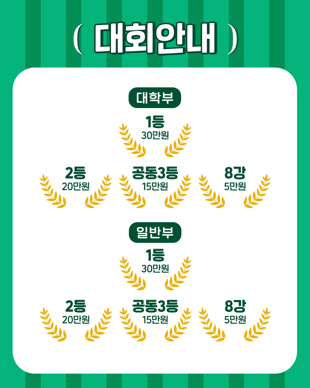 일반부 | 30만원 | 20만원 | 15만원 | 5만원 |
