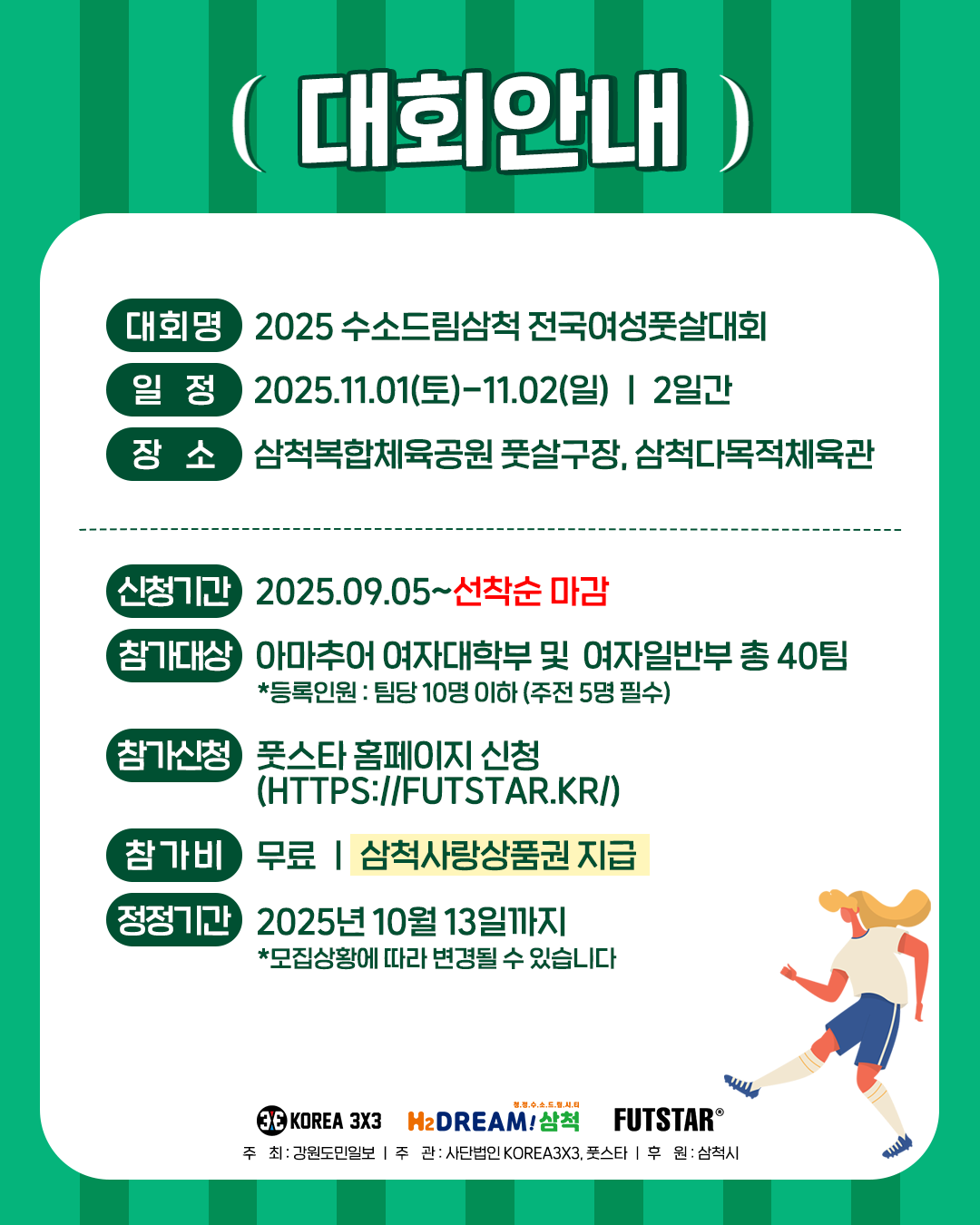 대회명: 2025 수소드림 삼척 전국 여성 풋살대회